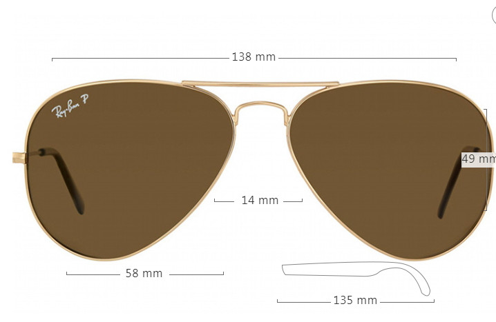 58 / линза 58 мм / мостик 14 мм / дужки 135 мм / ширина 135 мм