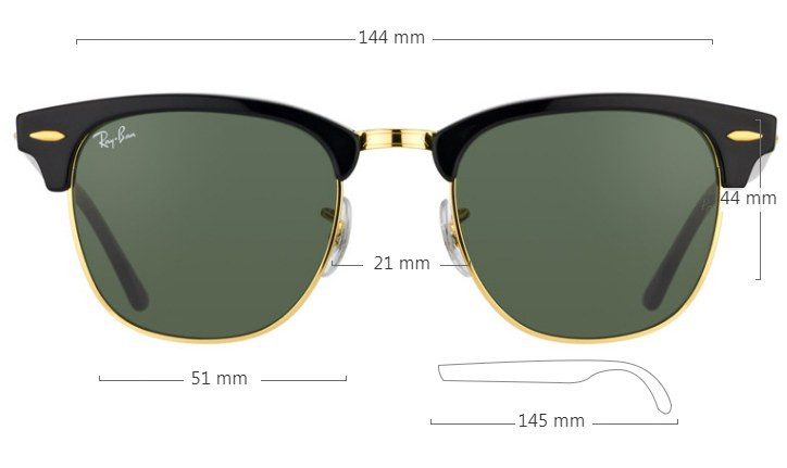 51 / линза: ширина 50.8 мм × высота 43.9 мм / мостик 21 мм / дужки 145 мм